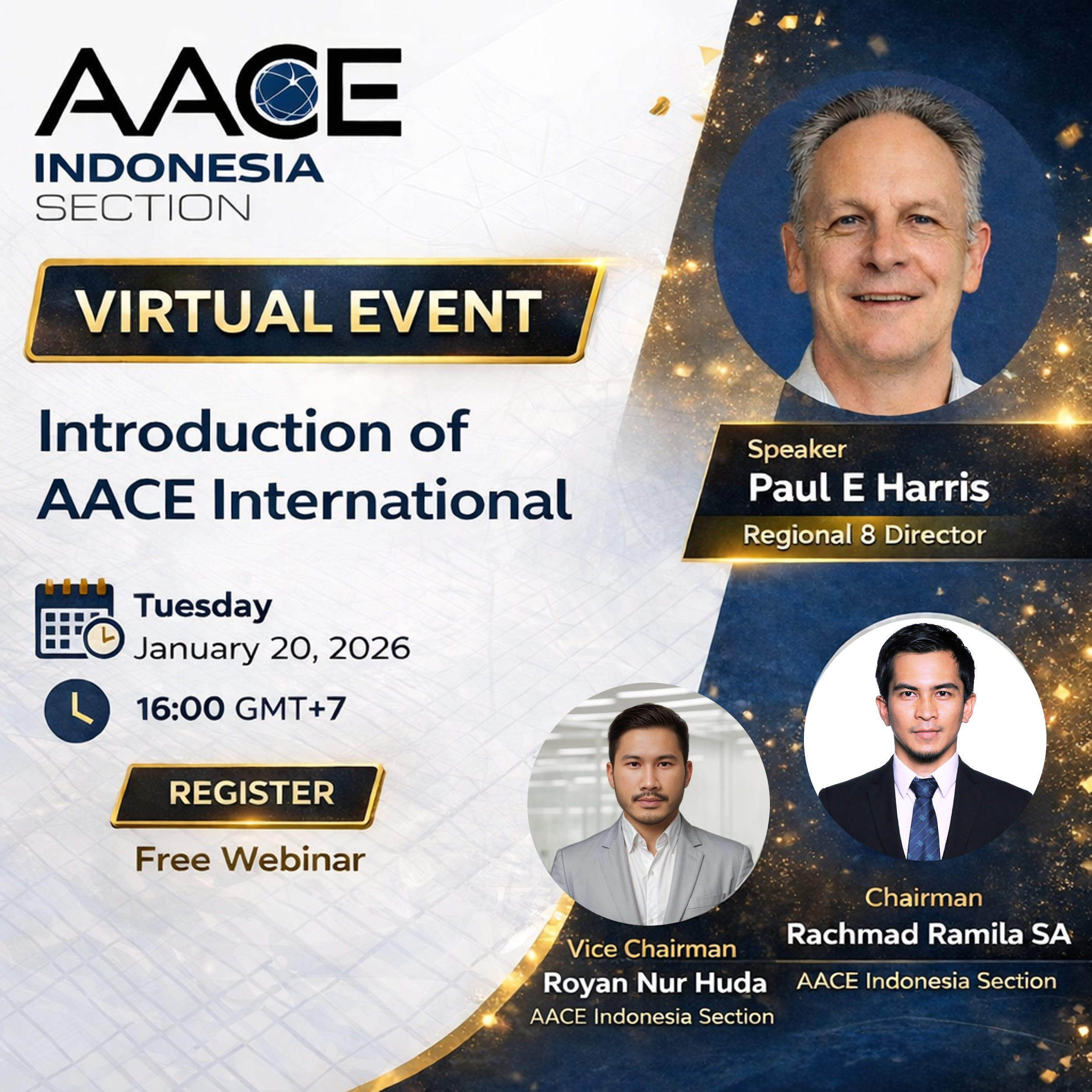 AACE Indonesia Section is pleased to invite you to a FREE webinar introducing AACE Internationalβits mission, value, and global impact on the practice of cost engineering, project controls, and total cost management.