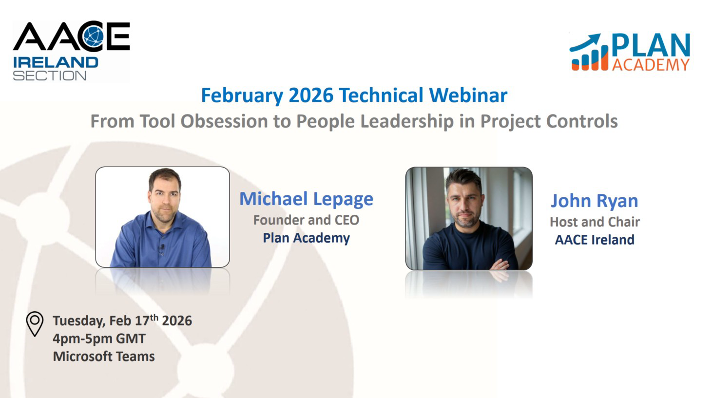 Join us on Tuesday, February 17th, for an online technical webinar featuring Michael Lepage, Founder and CEO of Plan Academy Inc., as he presents: “From Tool Obsession to People Leadership in Project Controls.”