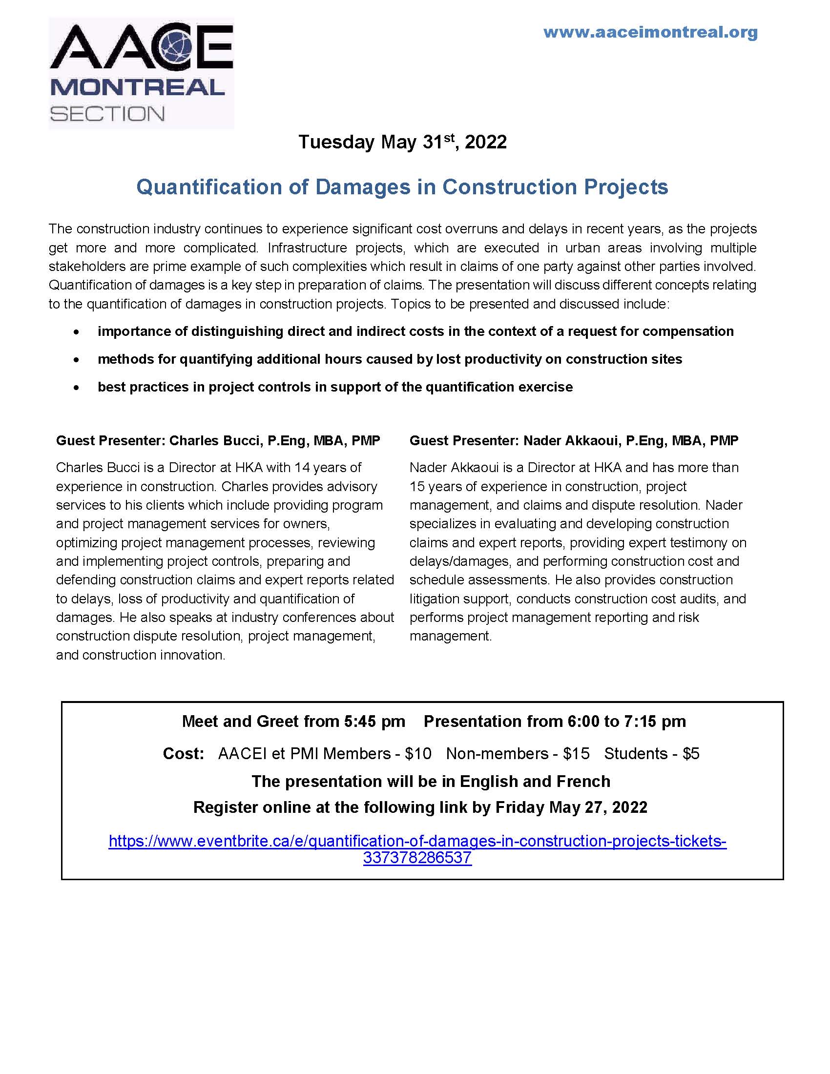 AACE Montreal Section: Quantification of Damages in Construction Projects